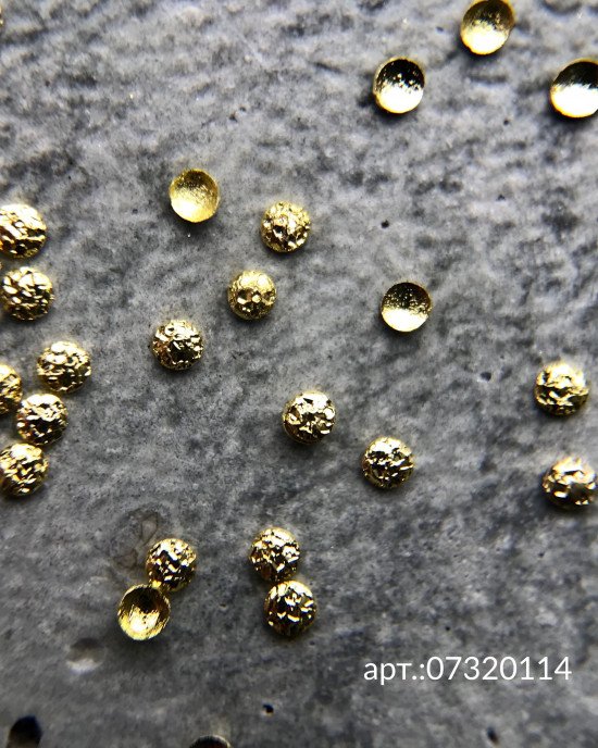 Область применения: полусферы круглые полые шлифованные золото 1 мм предназначены для декора ногтей.
